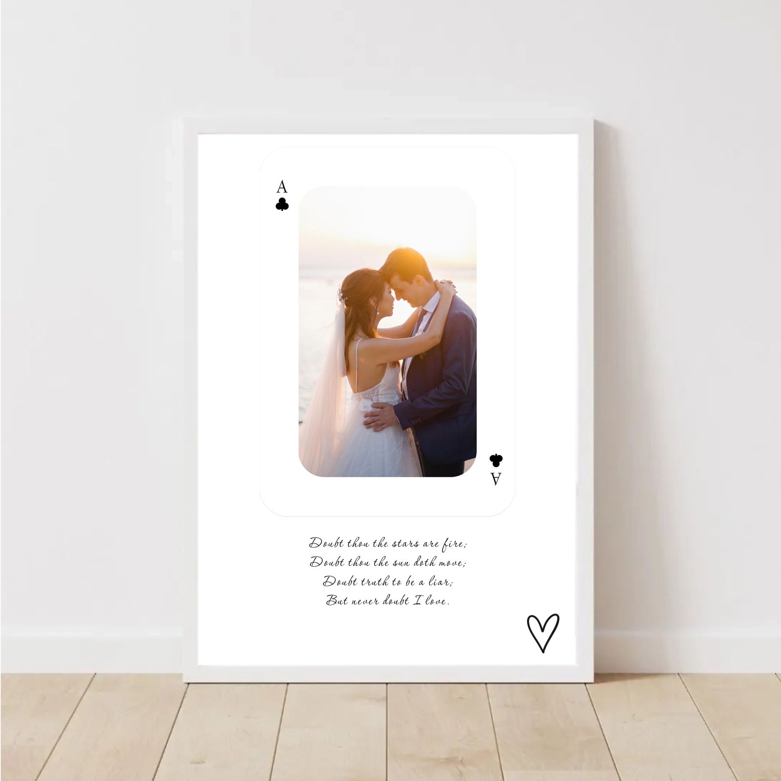 Celebrate your love story with our personalised wedding posters — beautifully customisable prints designed to honour your special day. In this collection, you can personalise elegant wedding-inspired designs with your names, wedding date, location and meaningful details to create a unique piece of art that captures the essence of your relationship. Whether you prefer romantic typography, floral accents or modern minimal aesthetics, each poster combines stylish visuals with your personal touches. All prints are made-to-order and produced on premium-quality paper for crisp detail and a timeless finish that looks stunning framed or on its own. Perfect as a wedding gift, anniversary keepsake or décor for your home, our personalised wedding posters turn unforgettable moments into lasting wall art.