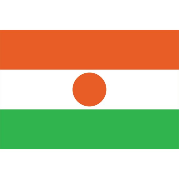 This sticker features the national flag of Niger, showcasing its distinct design of orange, white, and green stripes with an orange circle. Perfect for showcasing patriotism or adding vibrant color to any surface. Great for decorating personal items such as laptops, notebooks, or vehicles.