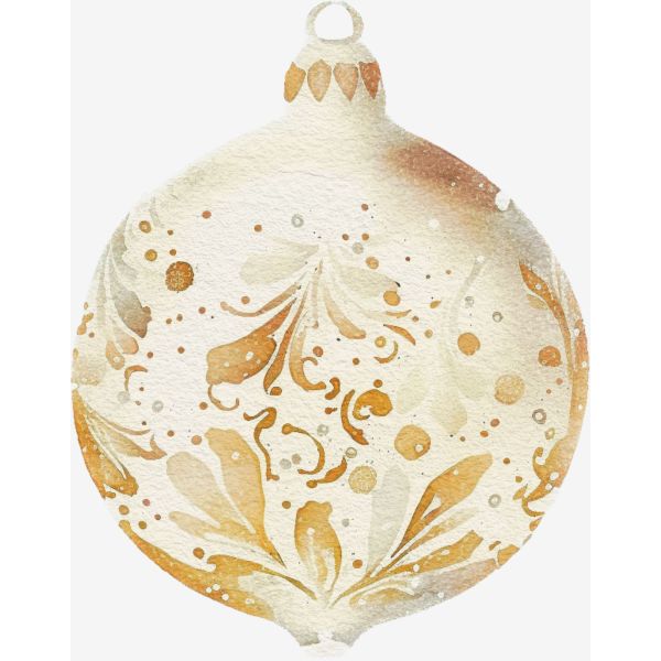 This beautifully designed sticker features an elegant ornament in warm, golden hues. Perfect for adding a festive touch to your holiday decorations. Ideal for seasonal accents and creative projects.
