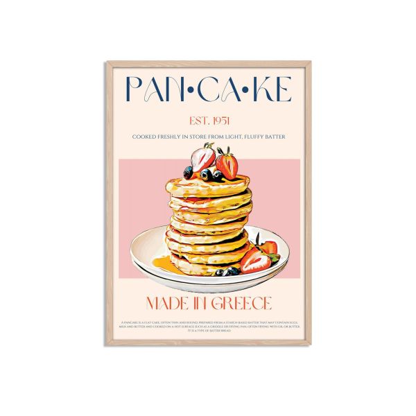 Bring a touch of delicious nostalgia to your space with this charming Pancake poster, featuring a beautifully illustrated stack of pancakes with fresh fruits. Perfect for adding a delightful twist to any kitchen or dining area.
