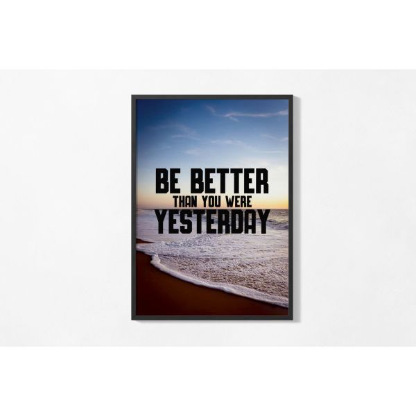 This motivational poster features the inspiring message 'BE BETTER THAN YOU WERE YESTERDAY' set against a tranquil beach background. Perfect for any space needing encouragement. The product contains a single poster only.