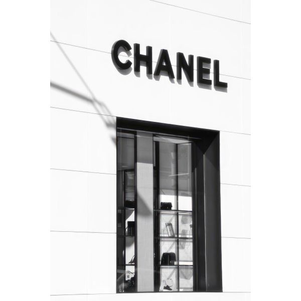 This elegant wall poster depicts the iconic Chanel store entrance, showcasing its luxurious appeal. The black and white design highlights the brand's timeless elegance. Perfect for adding a touch of class to any room. Product contains a single poster only.