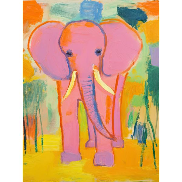 This vibrant poster features a colorful elephant painting, perfect for adding a splash of color to any room. The playful brush strokes and vivid colors make it a delightful piece of art. Product contains a single poster only.