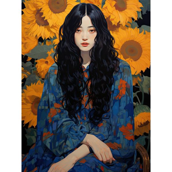 This poster features a striking artwork of a girl surrounded by vibrant sunflowers. The intricate details and vivid colors make it a captivating piece for any space. Perfect for art enthusiasts looking to add a splash of nature to their decor. Product contains a single poster only.