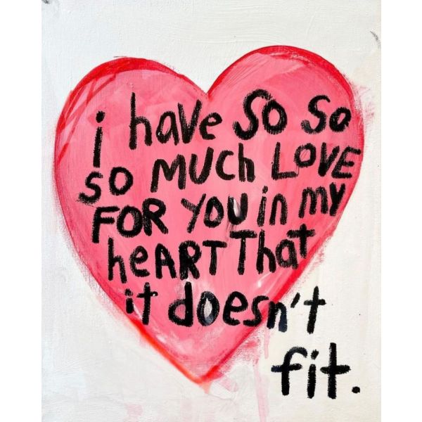 This poster beautifully illustrates a heartfelt message within a red heart shape. It reads: 'I have so so so much love for you in my heart that it doesn't fit.' A perfect addition for those looking to add a touch of love and warmth to their space. Product contains a single poster only.