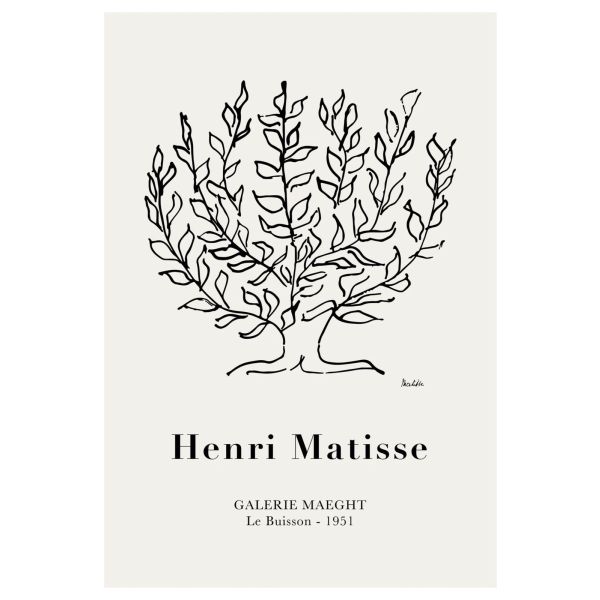 This poster features a beautiful artwork by Henri Matisse titled 'Le Buisson' from 1951, exhibited at Galerie Maeght. A classic representation of Matisse's style, this piece is perfect for art lovers. Product contains a single poster only.