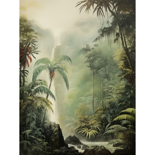 This poster depicts a lush jungle scene dominated by a serene waterfall, capturing a peaceful and natural vibe for your space. Perfect for nature lovers and those wishing to bring the tranquility of the outdoors inside. Product contains a single poster only.