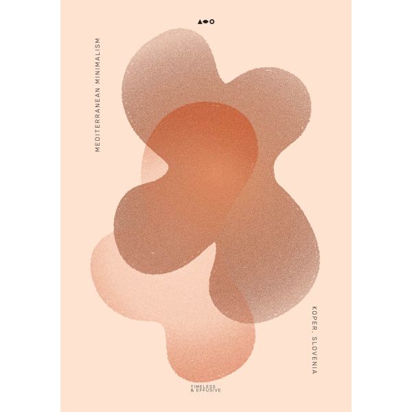 Discover the elegance of Mediterranean Minimalism with this striking wall poster. Featuring soft, flowing shapes in earthy tones, it inspires a sense of timeless calm. Prominently displayed are 'Mediterranean Minimalism', 'Timeless & Effusive', and 'Koper, Slovenia'. This product contains a single poster only.
