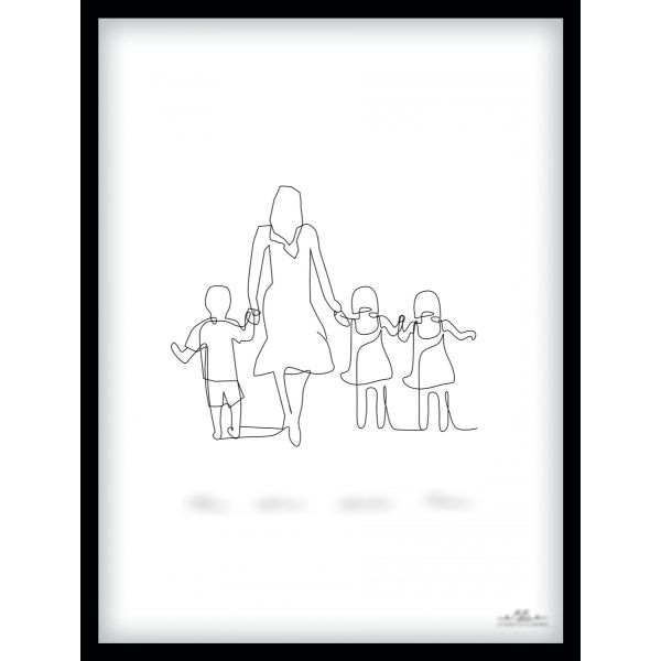 Poster – Mother with 3 Children / 2 Daughters and Son / Personalised