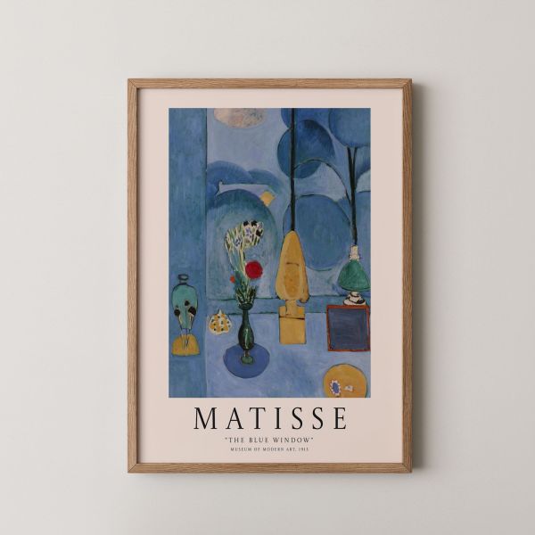 This poster features 'The Blue Window', a captivating painting by Henri Matisse that is housed in the Museum of Modern Art, created in 1913. A remarkable piece from the renowned artist, adding sophistication to any decor. Matisse's bold use of color and form captures the essence of modern art. Product contains a single poster only.