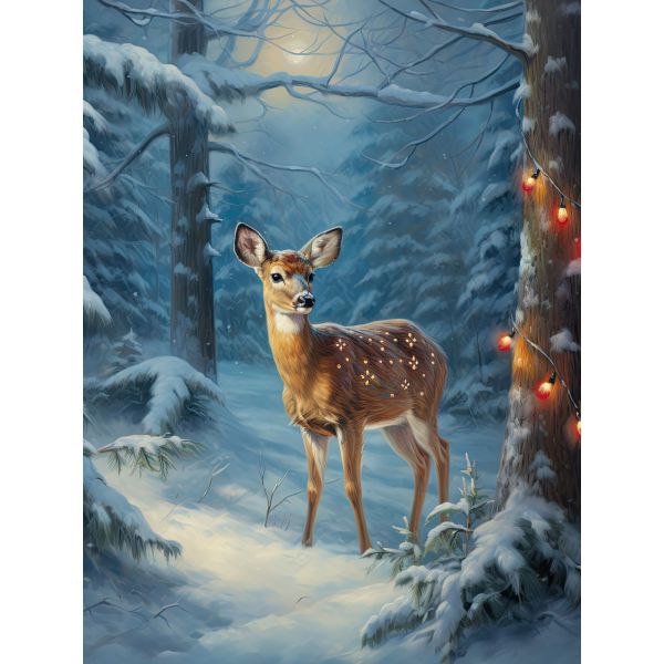This captivating deer poster presents a serene winter landscape, capturing the beauty of nature. Ideal for adding a touch of wilderness to your living space. Product contains a single poster only.