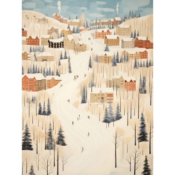 Experience the serene charm of a winter village landscape with this beautifully illustrated poster. The artwork features snow-laden trees and cozy houses, capturing the essence of a peaceful winter day. Perfect for enhancing your space with a touch of seasonal beauty. Product contains a single poster only.