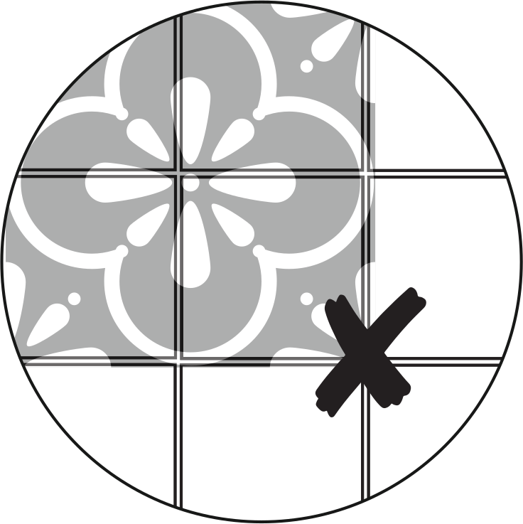 To prevent the corners from peeling up, the entire adhesive surface must be in contact with the material. Therefore, we recommend that you order the decorative films with exactly the same dimensions as your existing tiles.