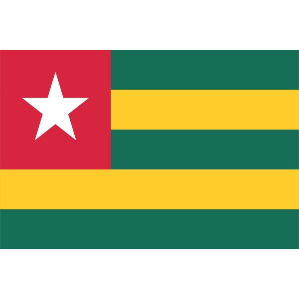 This sticker features the national flag of Togo with vibrant colors and a bold design. Perfect for showing your support and pride. Ideal for personal items or decor pieces.