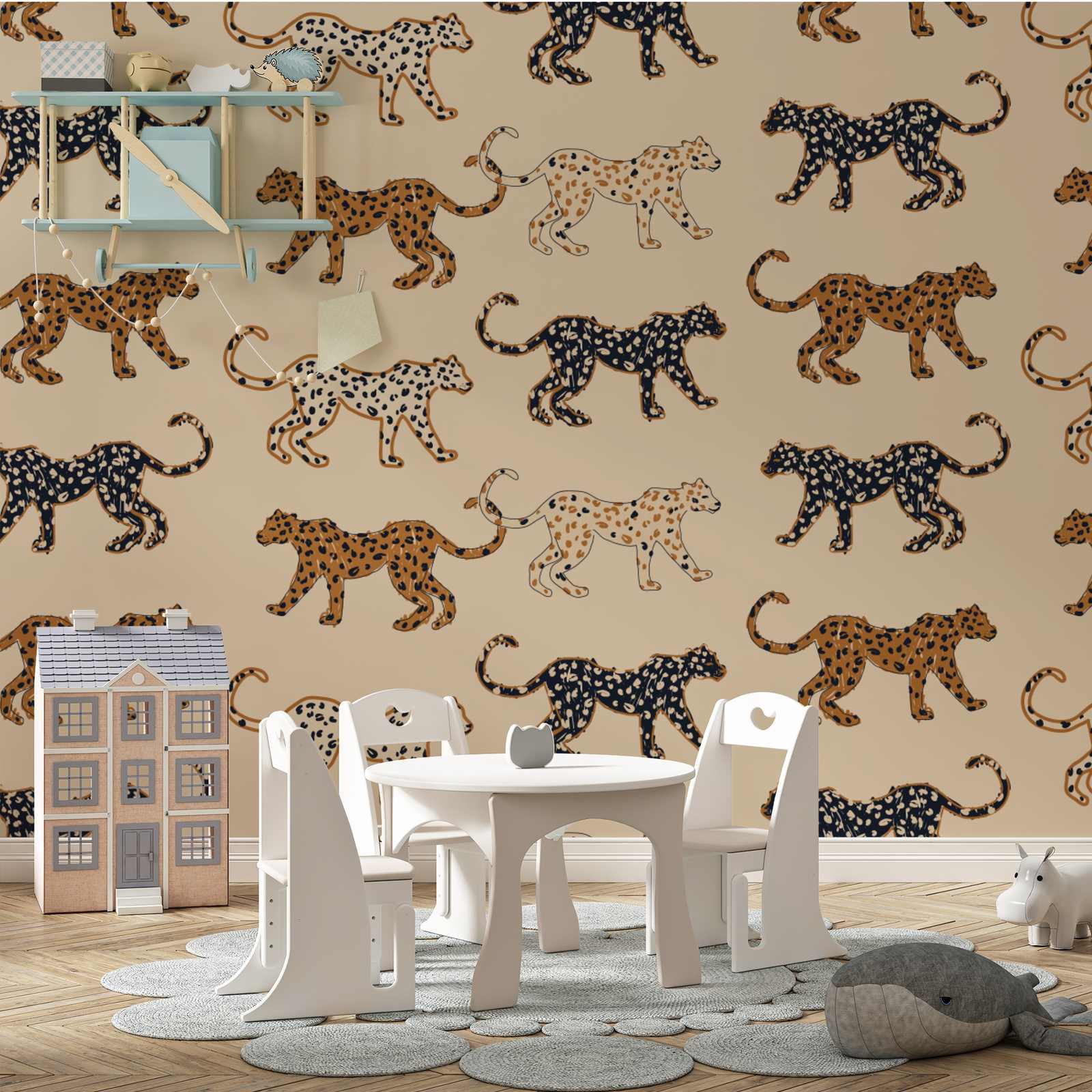 This wall paper features a stunning repeating cheetah pattern, perfect for adding a wild touch to any room. The design beautifully captures the grace and strength of these magnificent creatures. Great for both kids' and adults' spaces, it brings a playful yet stylish aesthetic.