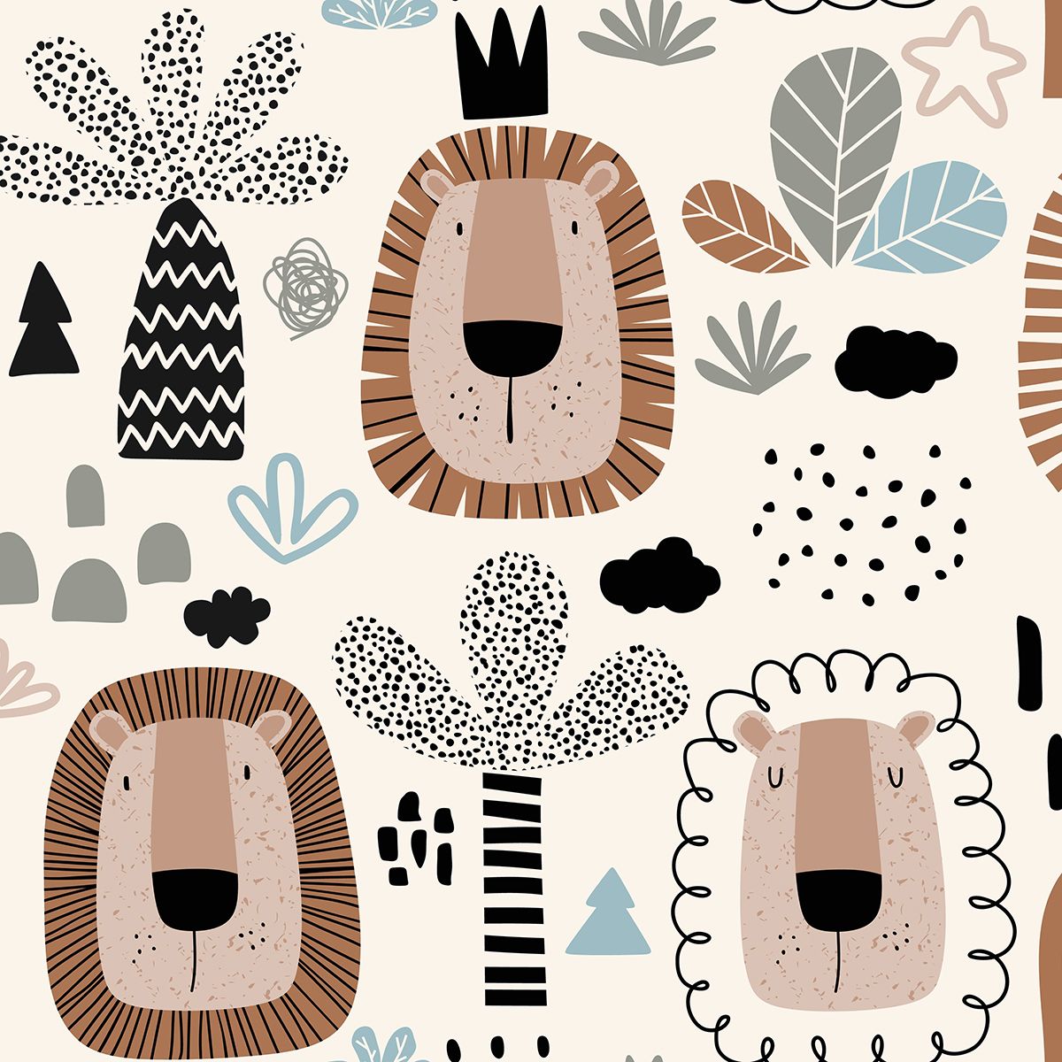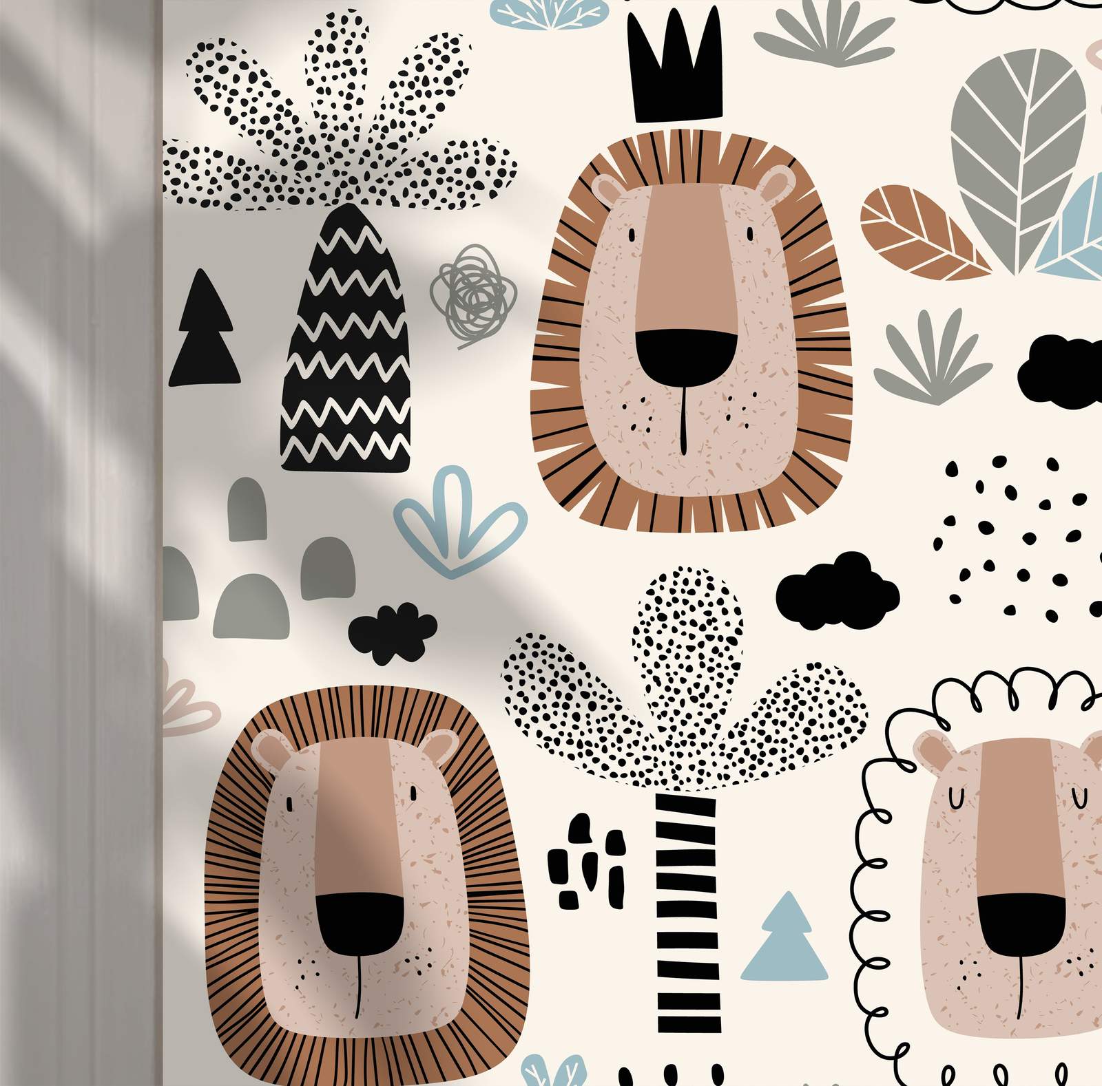 This wall paper features an adorable lion design complemented by nature elements. Perfect for creating a playful ambiance in any room. The product contains a single wall paper only.