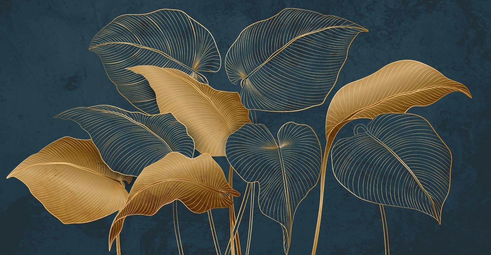The wall paper features a striking design of golden leaves on a dark background, adding elegance to any living space. Perfect for creating a sophisticated accent wall in your home. This wall paper is easy to apply and durable, making it an ideal choice for modern interiors.