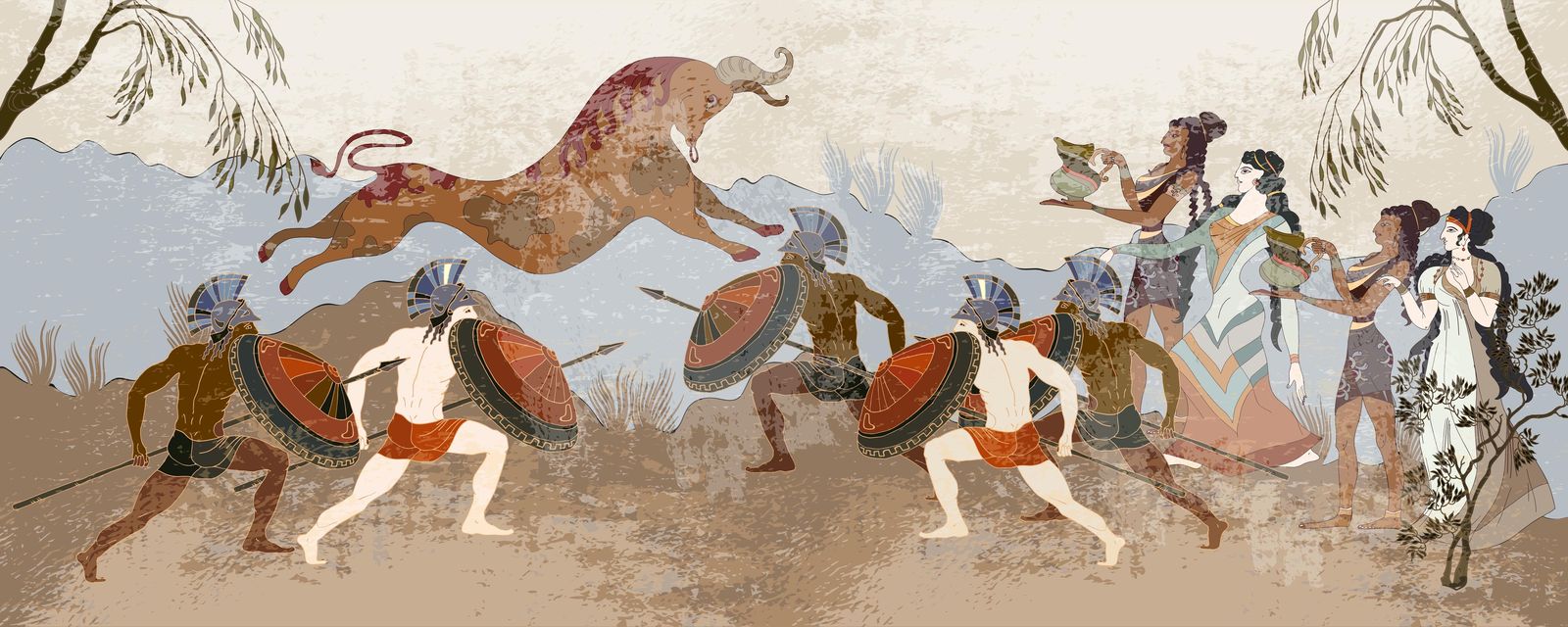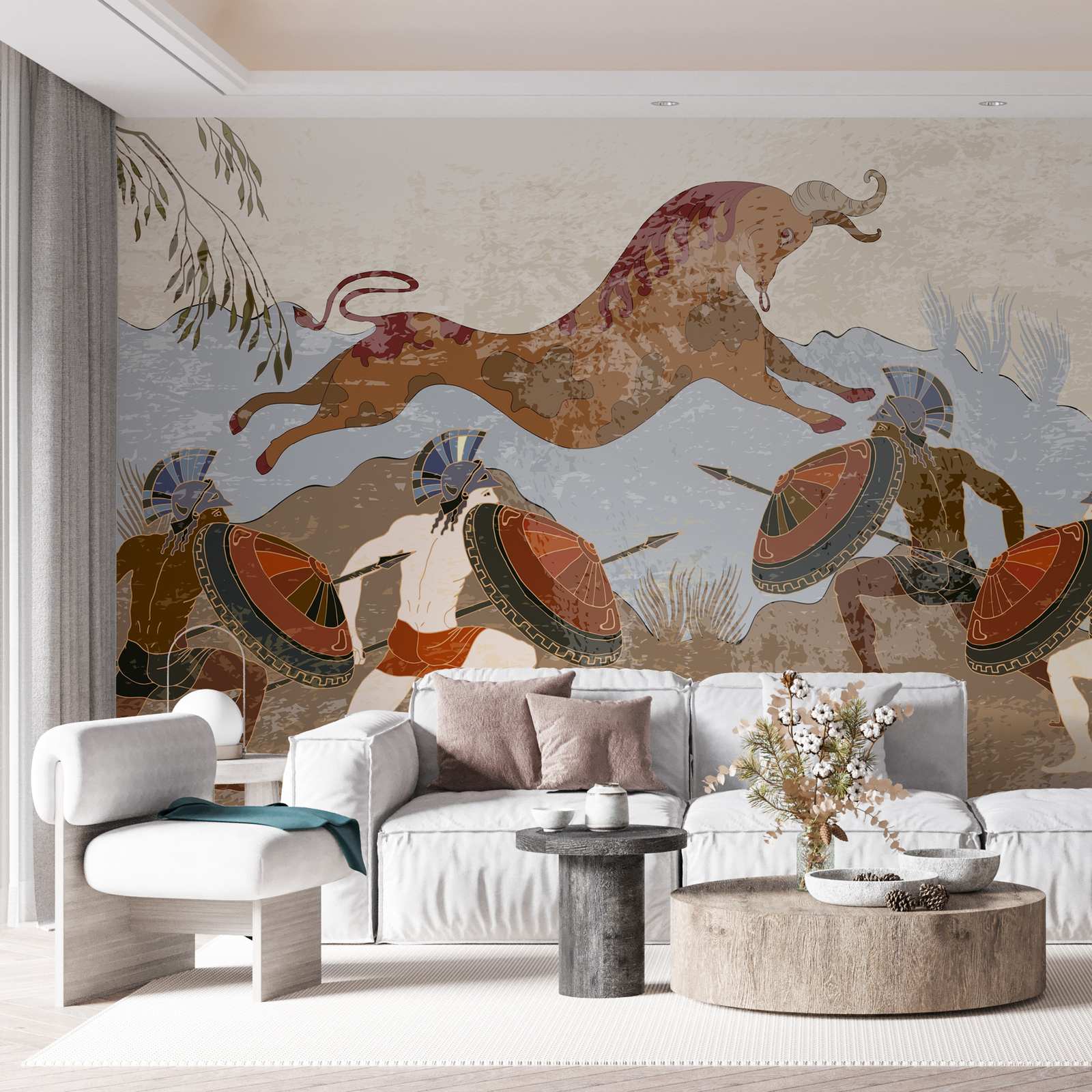 This stunning wall paper features a captivating scene from Greek mythology, depicting warriors and mythical creatures in a vibrant artistic style. Perfect for adding an epic historical touch to any room, this mural transports you to an ancient world filled with tales of heroism and gods. Experience the allure of mythology with this exquisite wall covering. Contains a single wall paper product only.